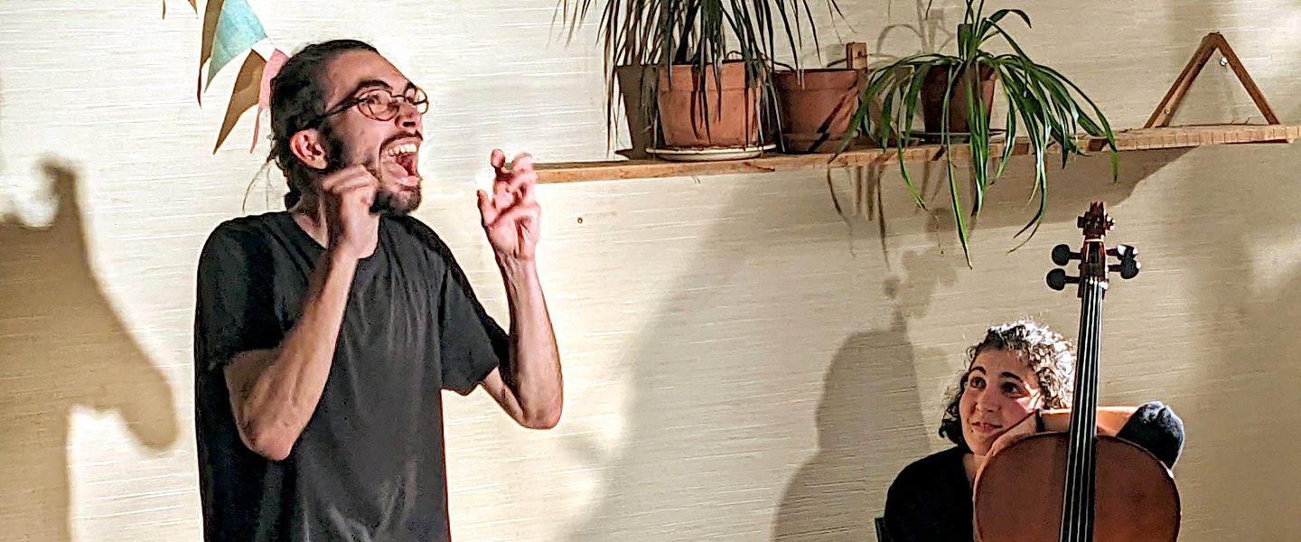 A l’aide d’un violoncelle, d’un soupçon de second degré et d’une galerie de personnages pittoresques, les deux artistes racontent un spectacle joyeux et participatif.